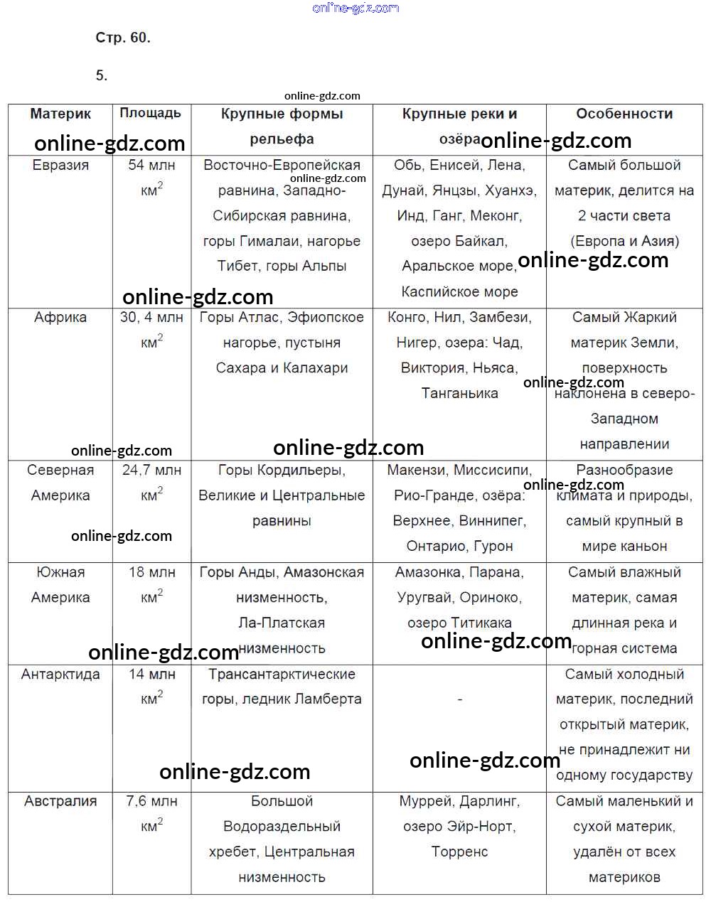 Готовые домашние задания по Географии за 5 класс Рабочая тетрадь Сонин, Курчина УМК 2015 - Страницы 60