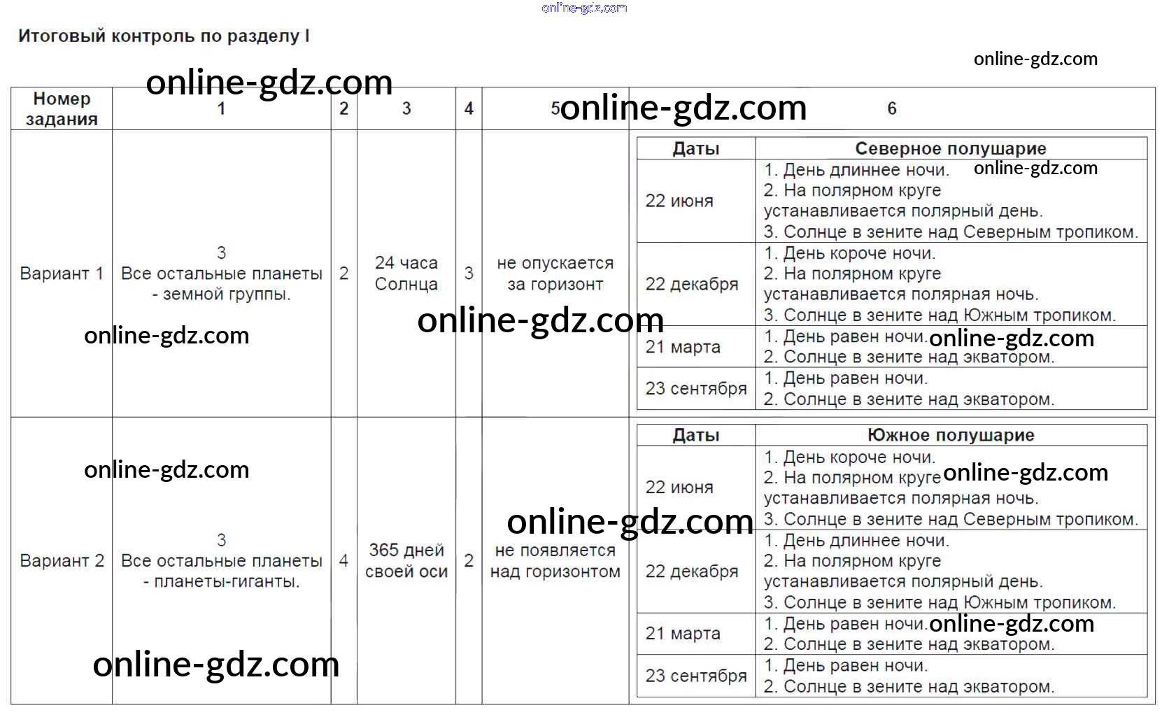 Готовые домашние задания по Географии за 5 класс Тесты Пятунин, Пятунина УМК 2017 - Земля как планета солнечной системы Итоговый контроль