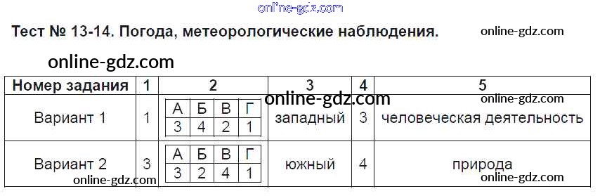 Готовые домашние задания по Географии за 5 класс Тесты Пятунин, Пятунина УМК 2017 - Атмосфера Тест 13-14