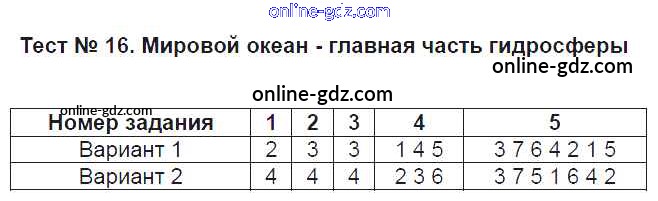 Готовые домашние задания по Географии за 5 класс Тесты Пятунин, Пятунина УМК 2017 - Водная оболочка земли Тест 16