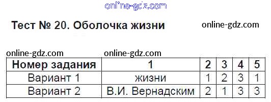 Готовые домашние задания по Географии за 5 класс Тесты Пятунин, Пятунина УМК 2017 - Биосфера Тест 20