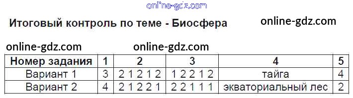 Готовые домашние задания по Географии за 5 класс Тесты Пятунин, Пятунина УМК 2017 - Биосфера Итоговый контроль
