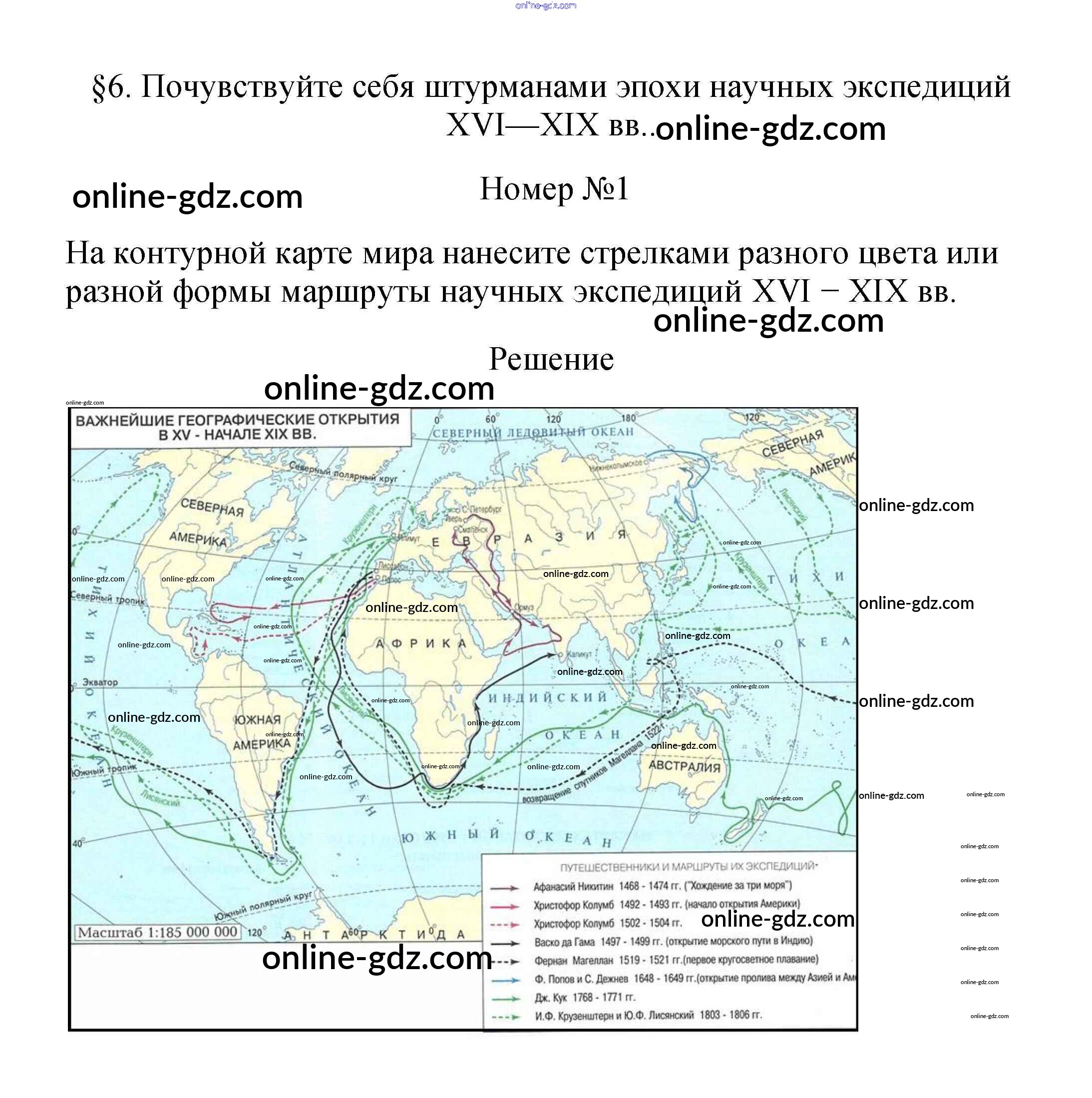 Готовые домашние задания по Географии за 5 класс Учебник Летягин 2021 - Почувствуйте себя штурманами эпохи научных экспедиций XVI—XIX вв. §6. Географические открытия и исследования в XVI—XIX вв. 1