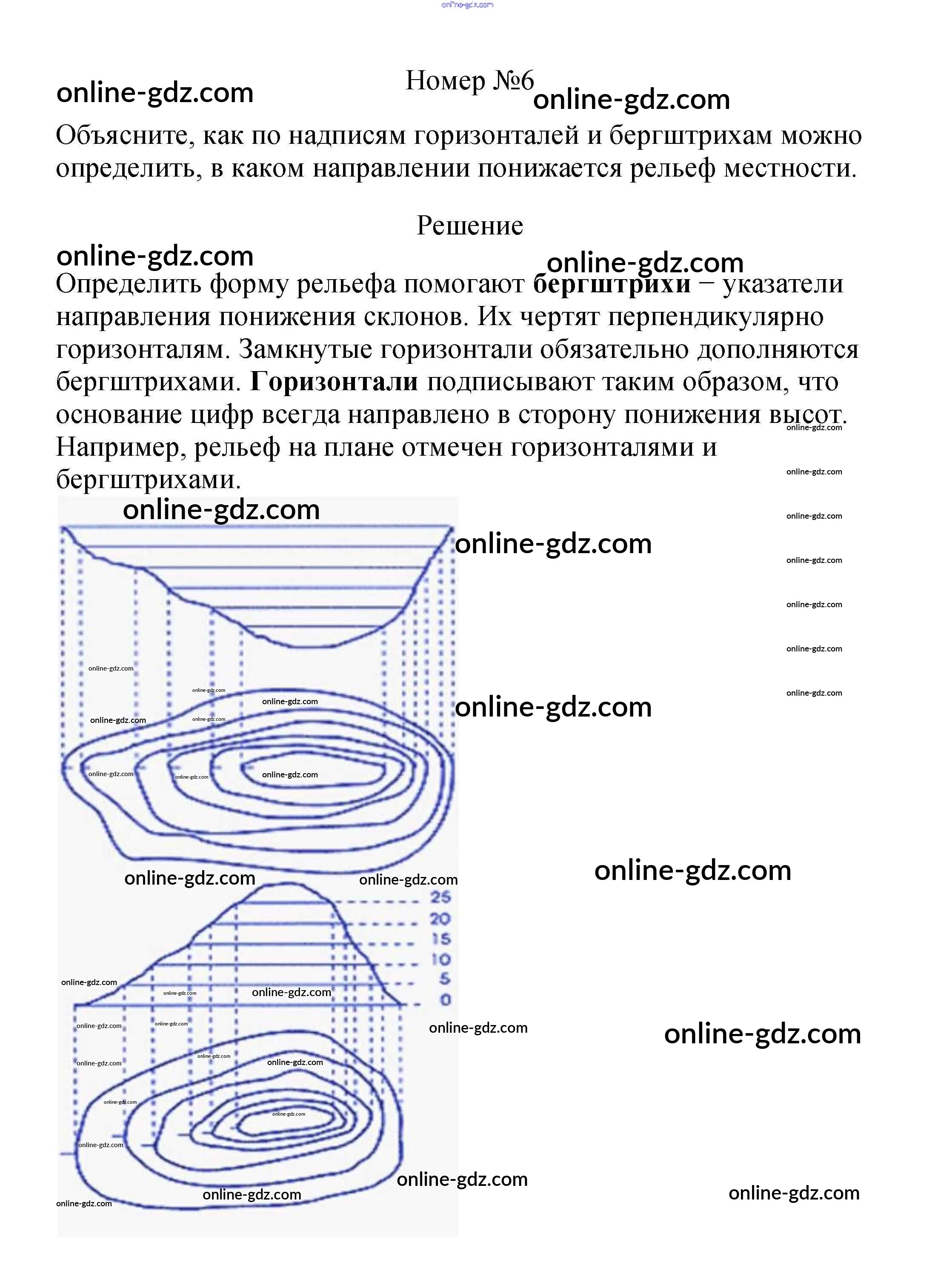 Готовые домашние задания по Географии за 5 класс Учебник Летягин 2021 - Вопросы и задания §13. Изображение рельефа на топографических планах и картах 6