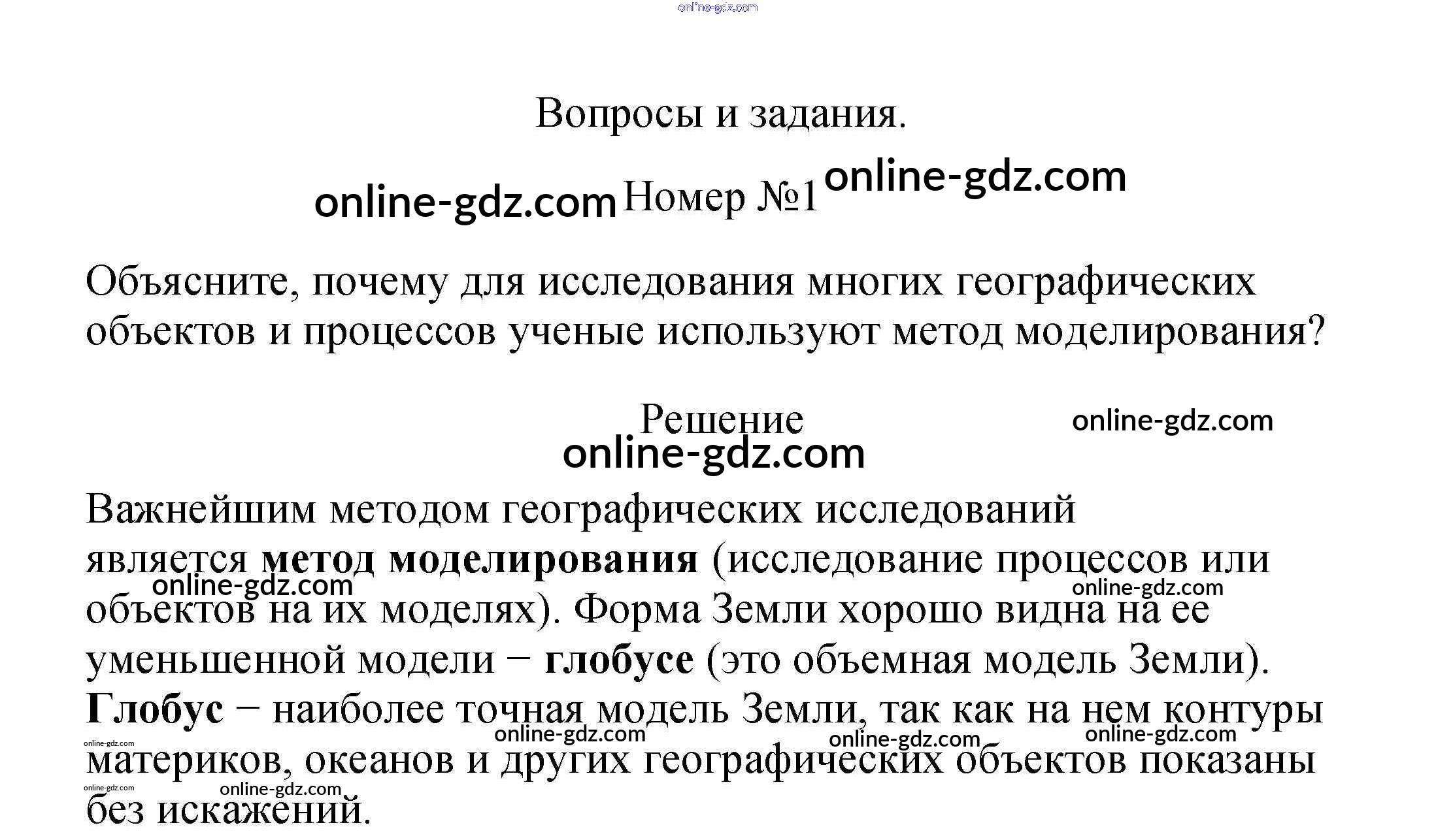 Готовые домашние задания по Географии за 5 класс Учебник Летягин 2021 - Вопросы и задания §15. Глобус — модель Земли 1
