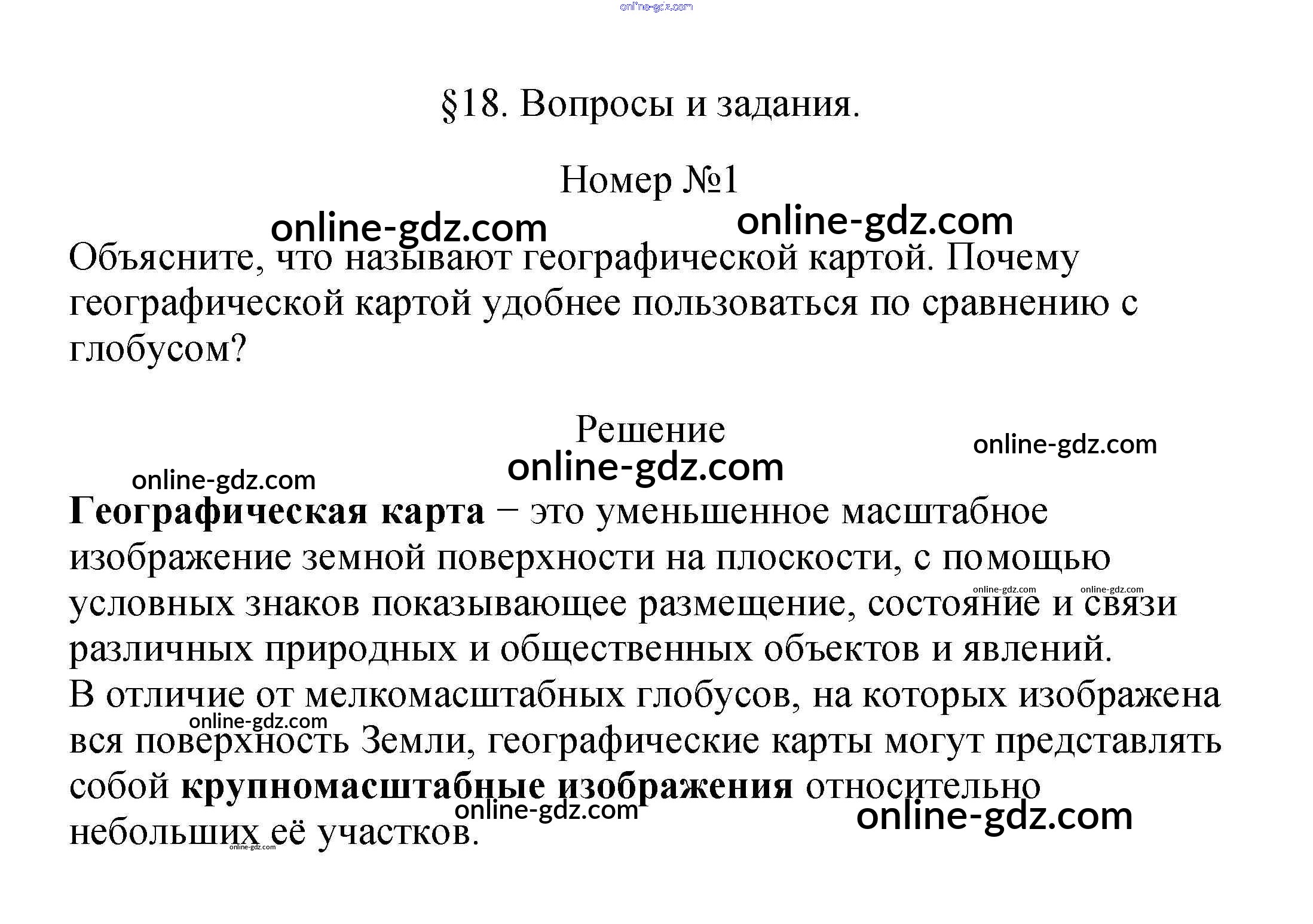 Готовые домашние задания по Географии за 5 класс Учебник Летягин 2021 - Вопросы и задания §18. Географическая карта 1
