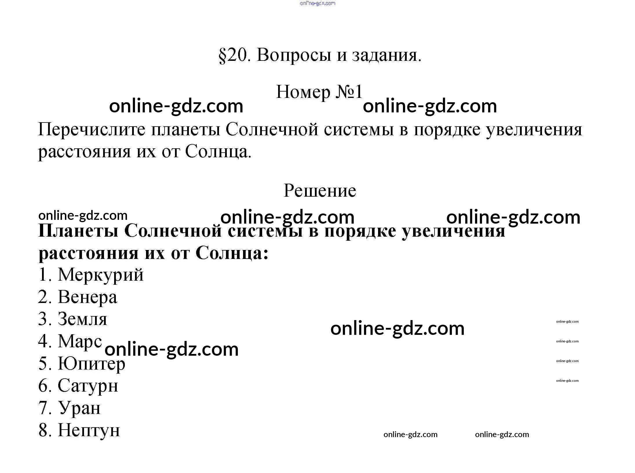 Готовые домашние задания по Географии за 5 класс Учебник Летягин 2021 - Вопросы и задания §20. Земля среди других планет Солнечной системы 1