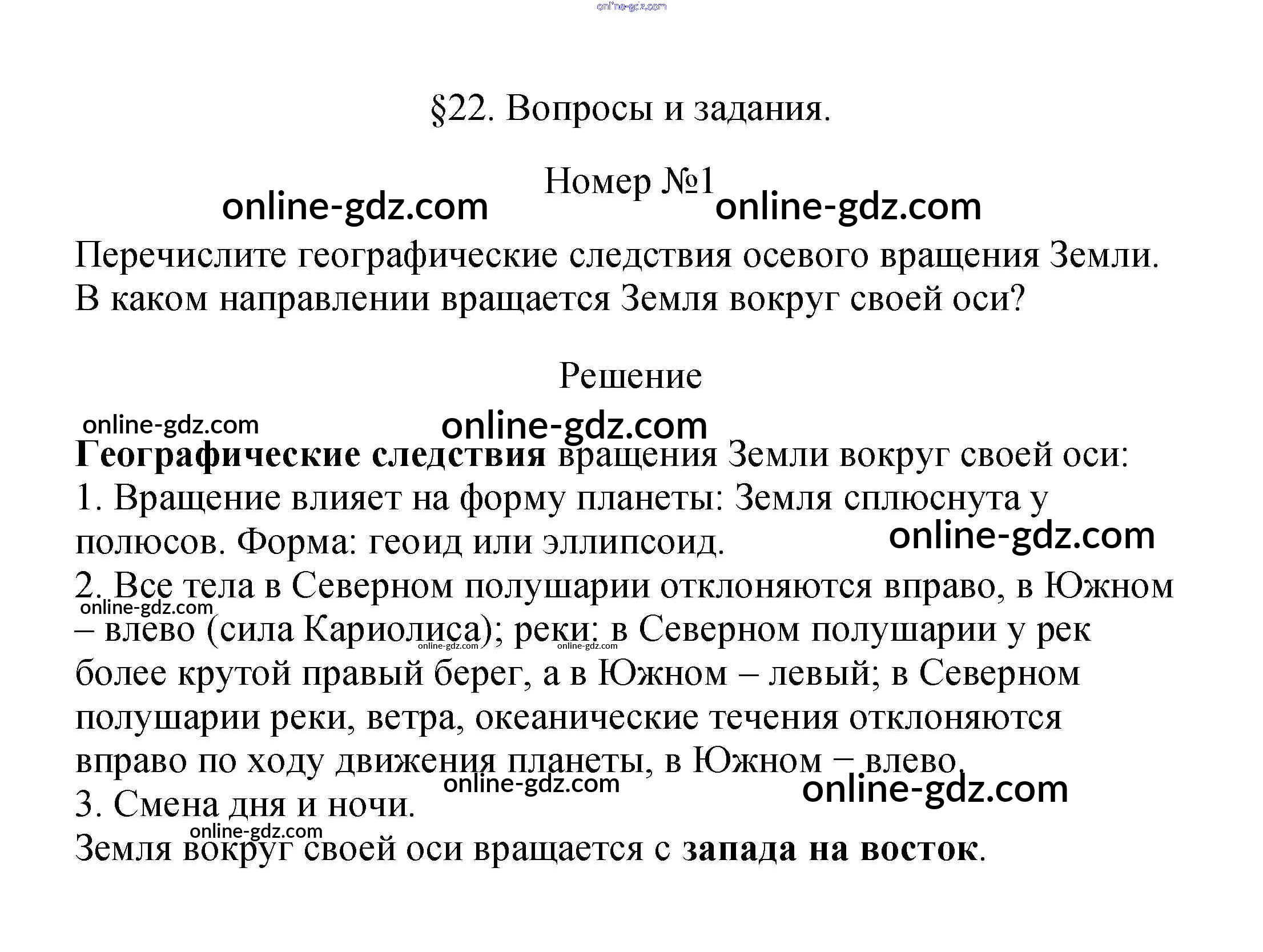 Готовые домашние задания по Географии за 5 класс Учебник Летягин 2021 - Вопросы и задания §22. Пояса освещённости. Суточное вращение Земли 1