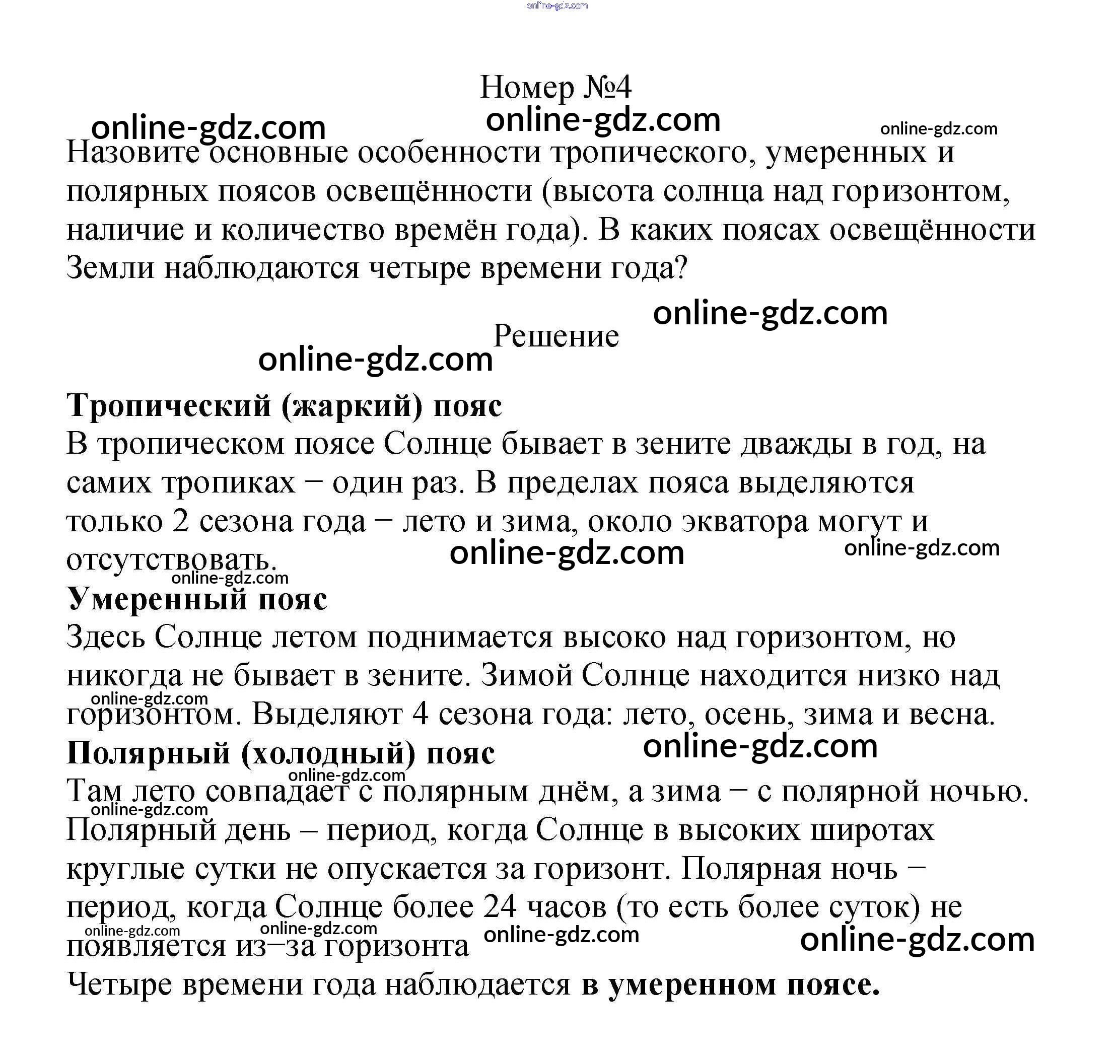 Готовые домашние задания по Географии за 5 класс Учебник Летягин 2021 - Вопросы и задания §22. Пояса освещённости. Суточное вращение Земли 4