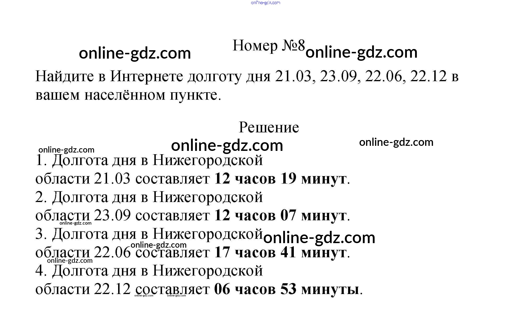 Готовые домашние задания по Географии за 5 класс Учебник Летягин 2021 - Вопросы и задания §22. Пояса освещённости. Суточное вращение Земли 8