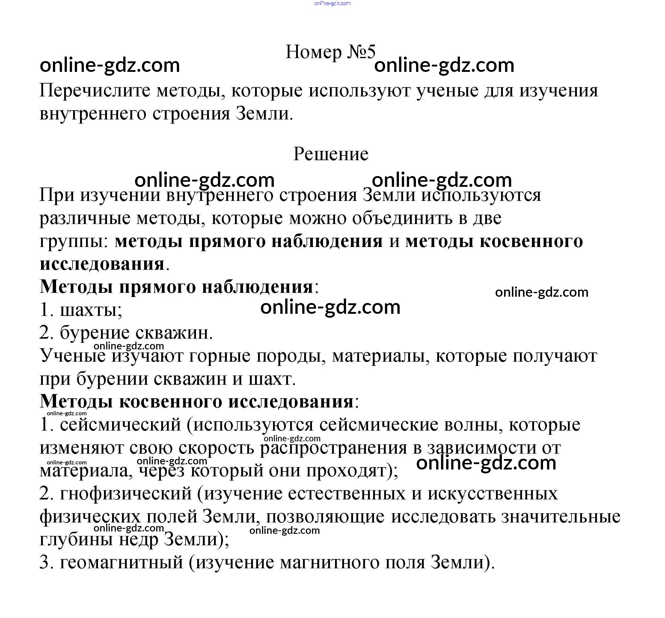Готовые домашние задания по Географии за 5 класс Учебник Летягин 2021 - Вопросы и задания §23. Внутреннее строение Земли. Строение земной коры 5