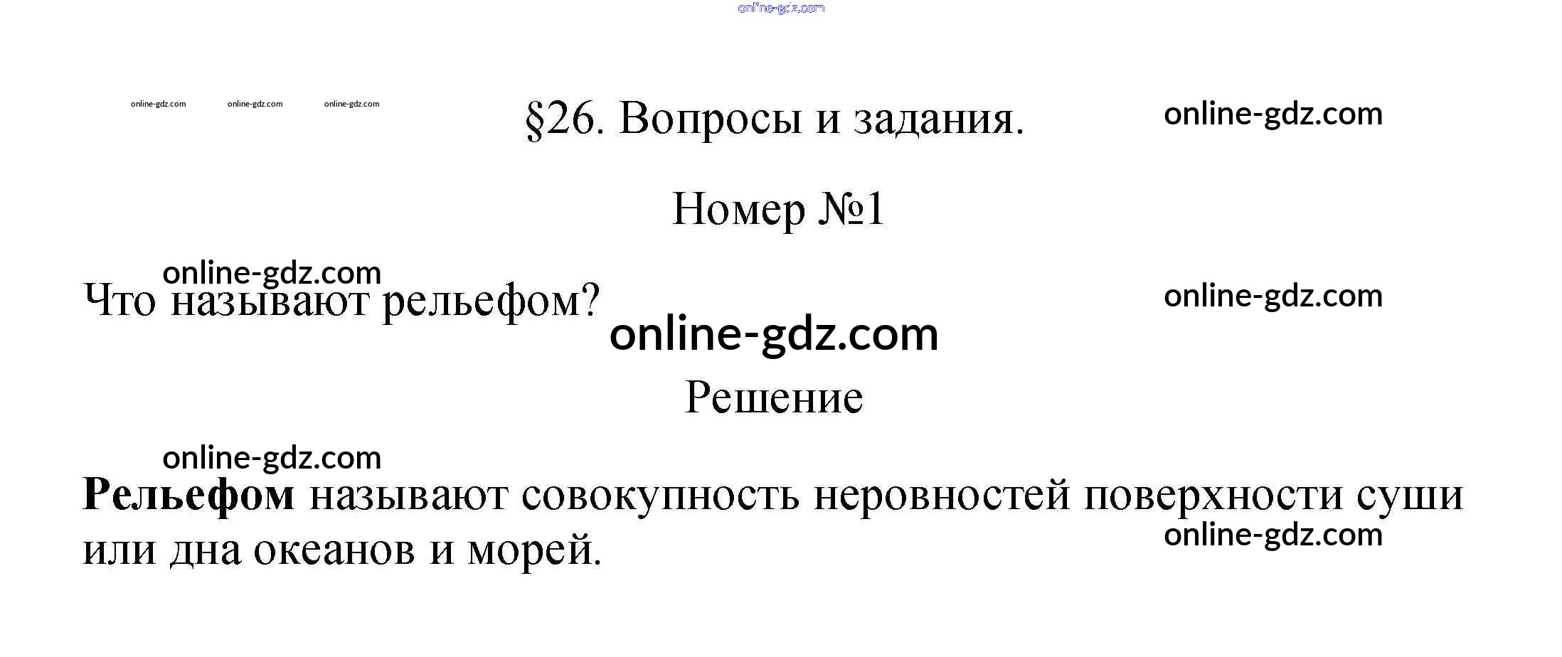 Готовые домашние задания по Географии за 5 класс Учебник Летягин 2021 - Вопросы и задания §26. Рельеф земной поверхности 1