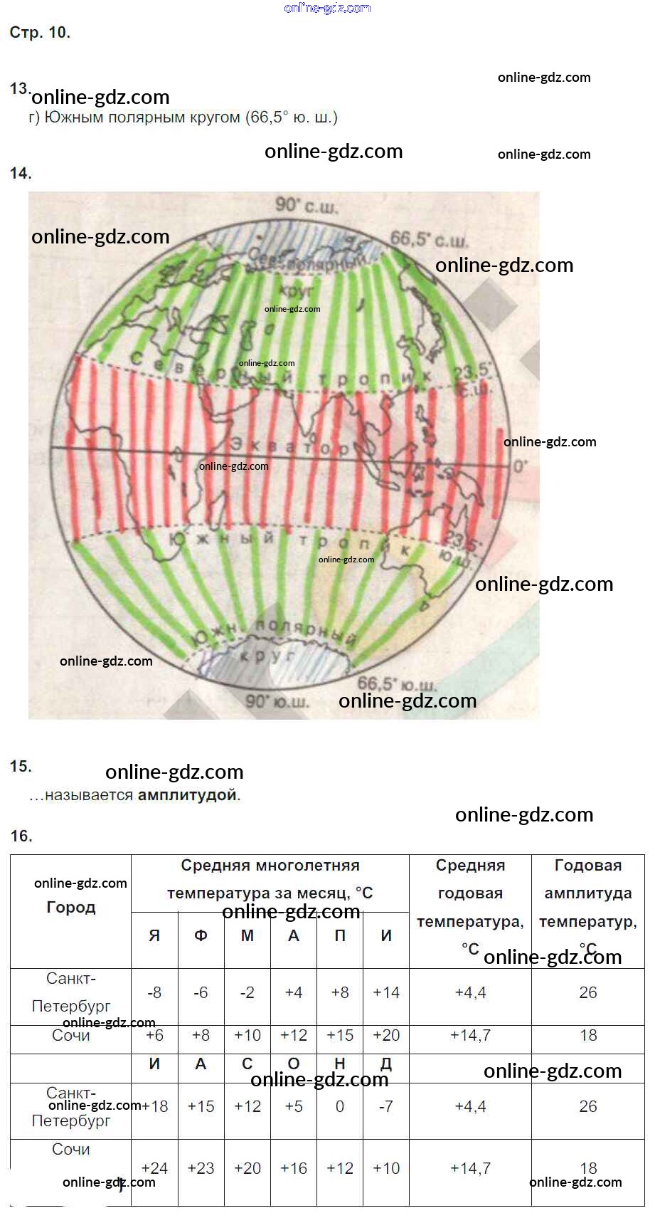 Готовые домашние задания по Географии за 6 класс Рабочая тетрадь Дронов, Савельева Вертикаль 2016 - Атмосфера (страницы тетради) 10