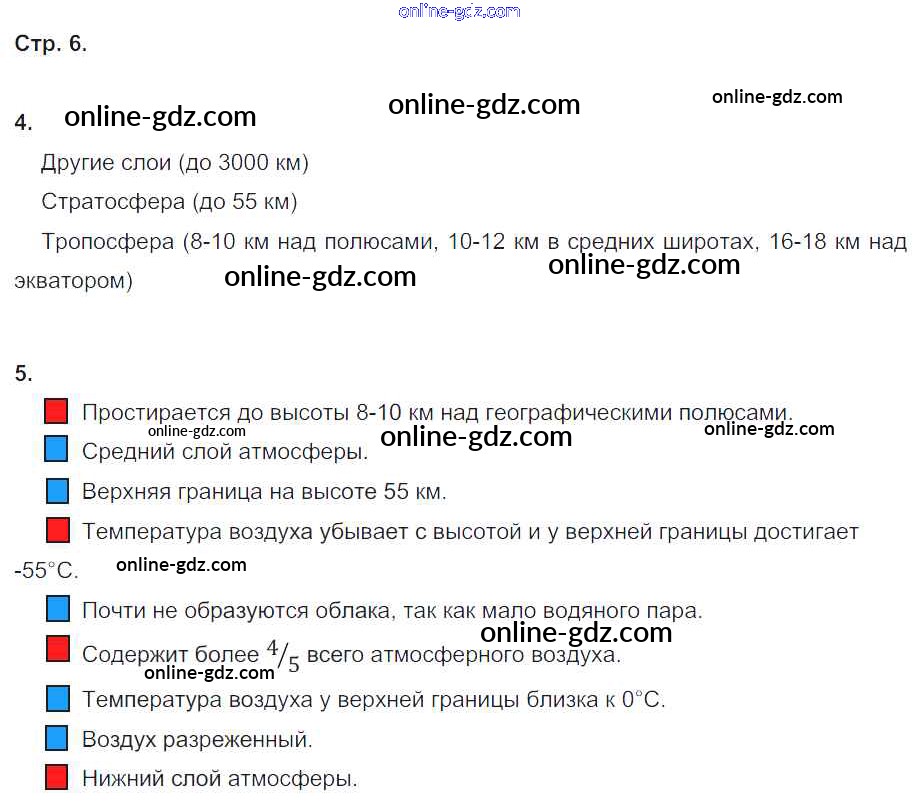 Готовые домашние задания по Географии за 6 класс Рабочая тетрадь Дронов, Савельева Вертикаль 2016 - Атмосфера (страницы тетради) 6
