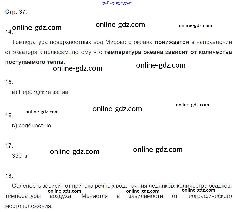 Готовые домашние задания по Географии за 6 класс Рабочая тетрадь Дронов, Савельева Вертикаль 2016 - Гидросфера (страницы тетради) 37