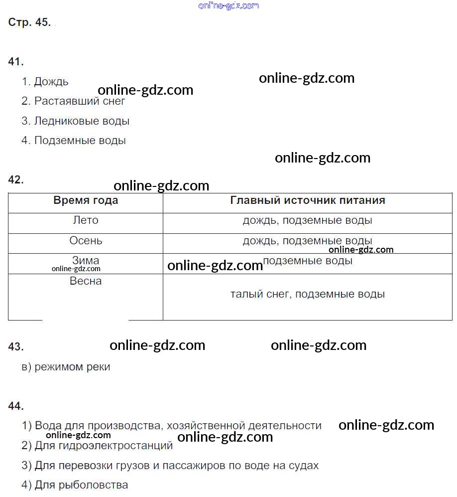 Готовые домашние задания по Географии за 6 класс Рабочая тетрадь Дронов, Савельева Вертикаль 2016 - Гидросфера (страницы тетради) 45