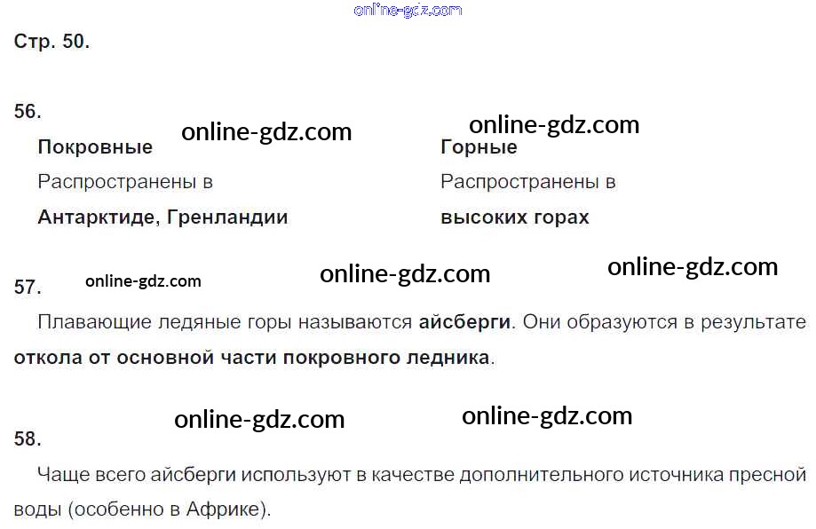 Готовые домашние задания по Географии за 6 класс Рабочая тетрадь Дронов, Савельева Вертикаль 2016 - Гидросфера (страницы тетради) 50