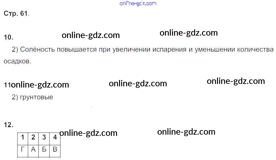 Готовые домашние задания по Географии за 6 класс Рабочая тетрадь Дронов, Савельева Вертикаль 2016 - Гидросфера (страницы тетради) 61