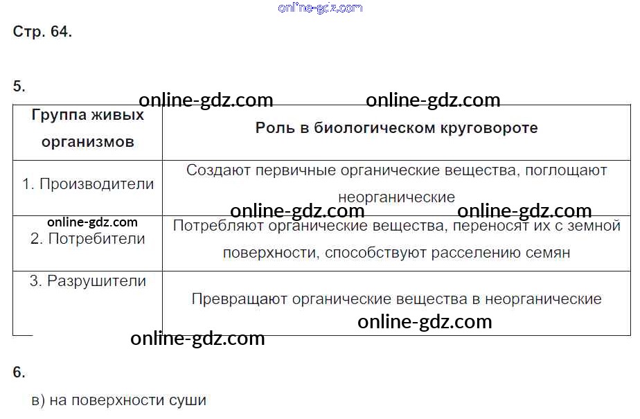 Готовые домашние задания по Географии за 6 класс Рабочая тетрадь Дронов, Савельева Вертикаль 2016 - Биосфера (страницы тетради) 64