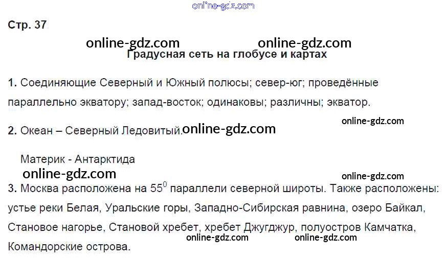 Готовые домашние задания по Географии за 6 класс Рабочая тетрадь Карташева, Курчина Вертикаль 2020 - Страницы 37