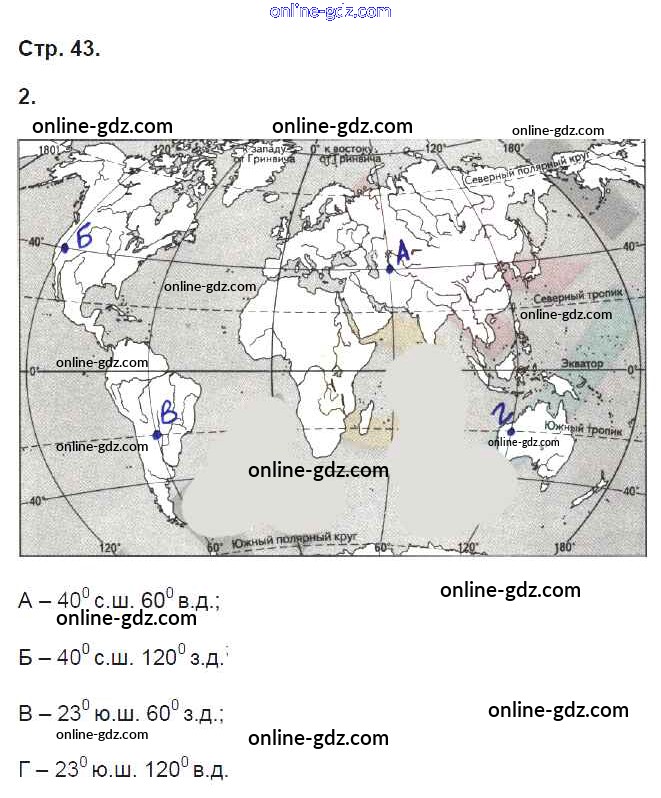 Готовые домашние задания по Географии за 6 класс Рабочая тетрадь Карташева, Курчина Вертикаль 2020 - Страницы 43