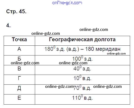 Готовые домашние задания по Географии за 6 класс Рабочая тетрадь Карташева, Курчина Вертикаль 2020 - Страницы 45