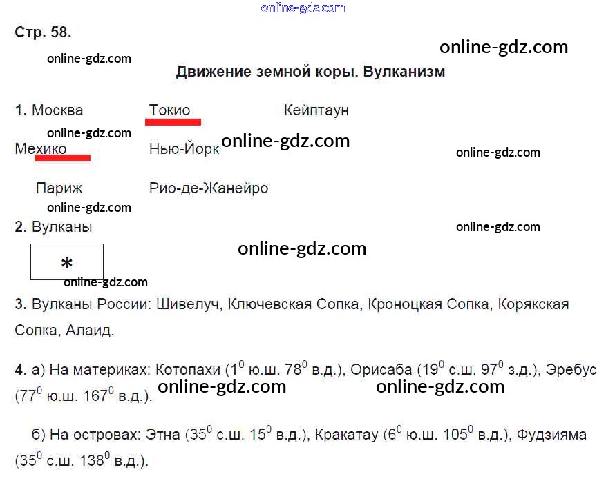 Готовые домашние задания по Географии за 6 класс Рабочая тетрадь Карташева, Курчина Вертикаль 2020 - Страницы 58