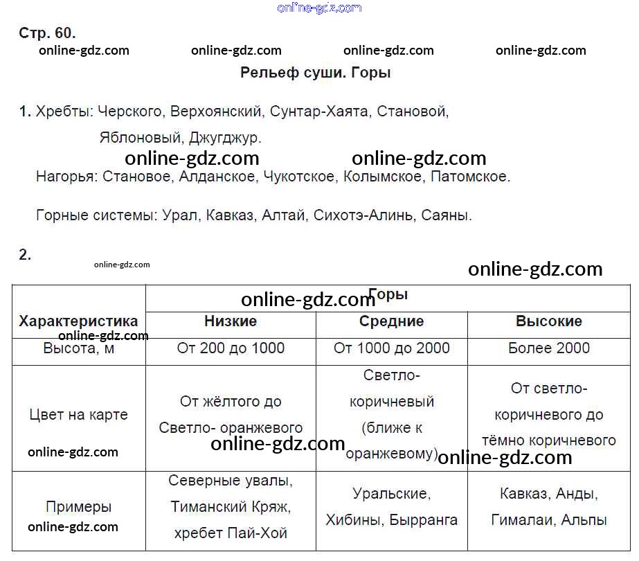 Готовые домашние задания по Географии за 6 класс Рабочая тетрадь Карташева, Курчина Вертикаль 2020 - Страницы 60