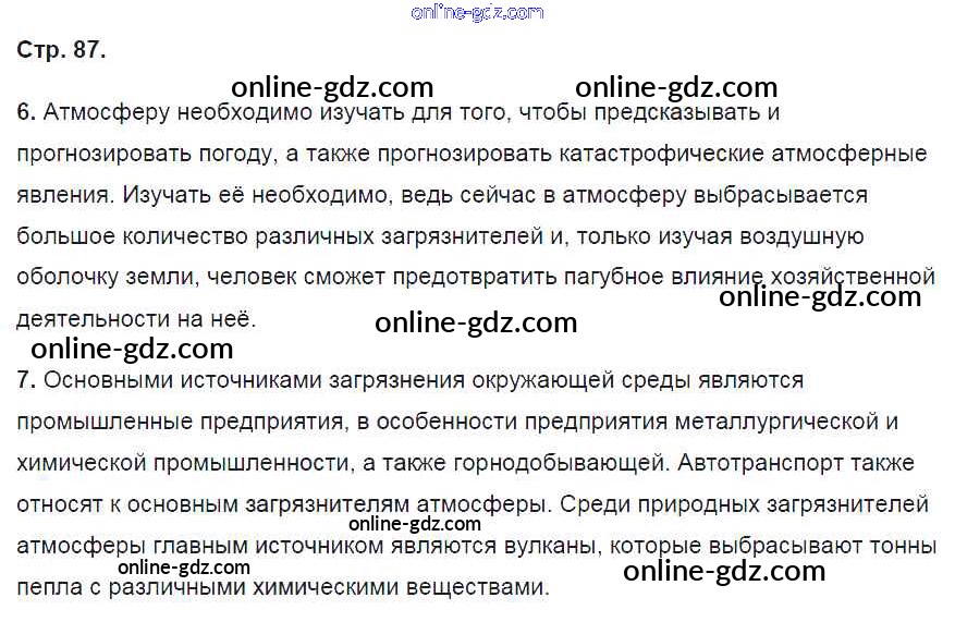 Готовые домашние задания по Географии за 6 класс Рабочая тетрадь Карташева, Курчина Вертикаль 2020 - Страницы 87