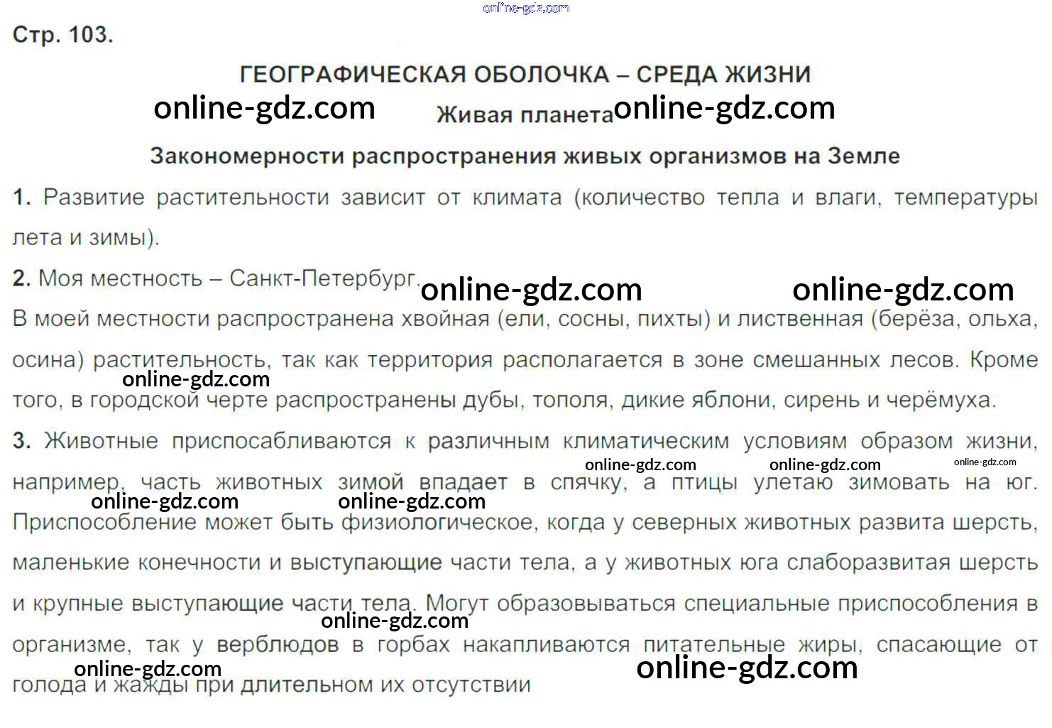 Готовые домашние задания по Географии за 6 класс Рабочая тетрадь Румянцев, Ким Вертикаль 2015 - Страницы тетради 103