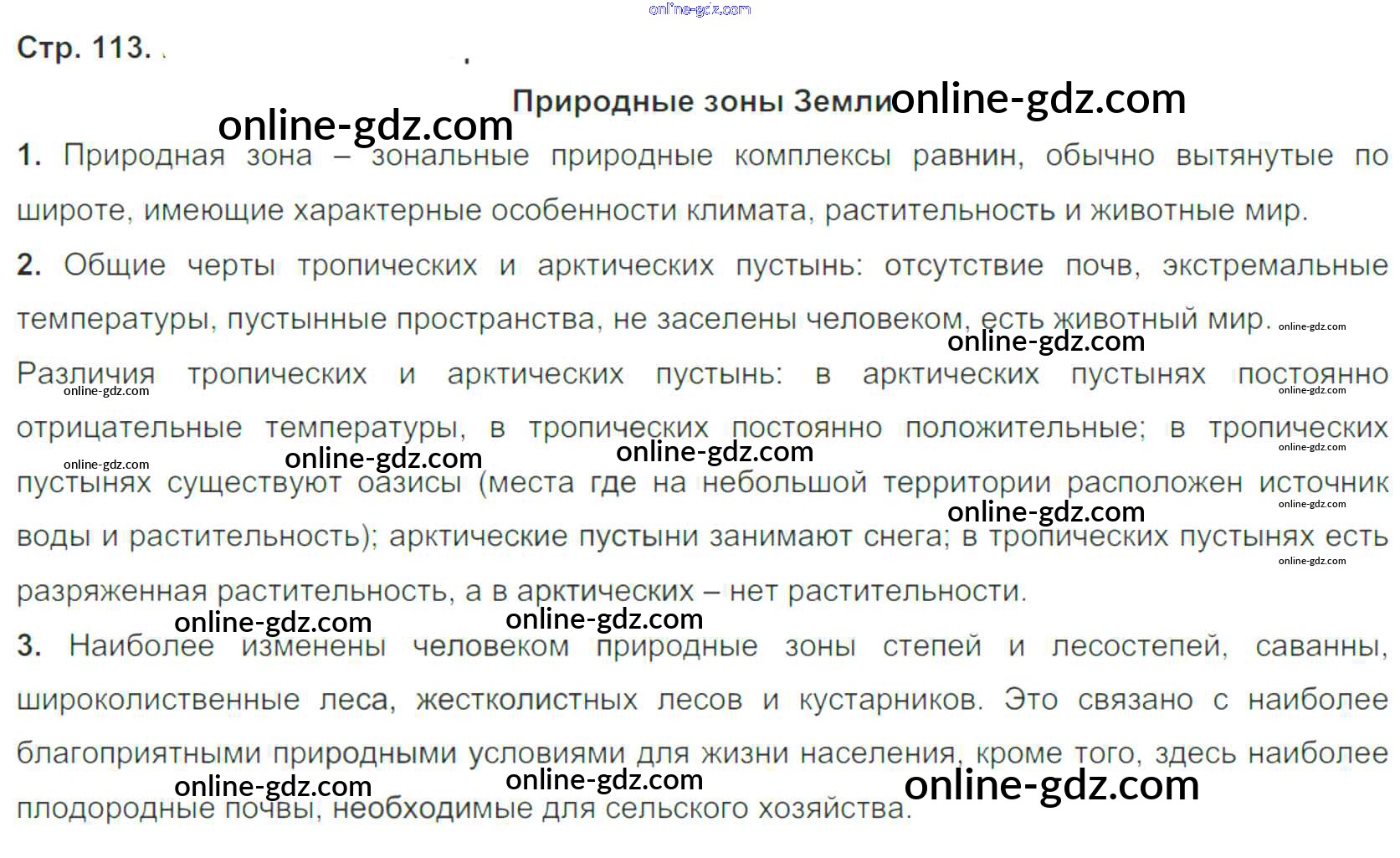 Готовые домашние задания по Географии за 6 класс Рабочая тетрадь Румянцев, Ким Вертикаль 2015 - Страницы тетради 113