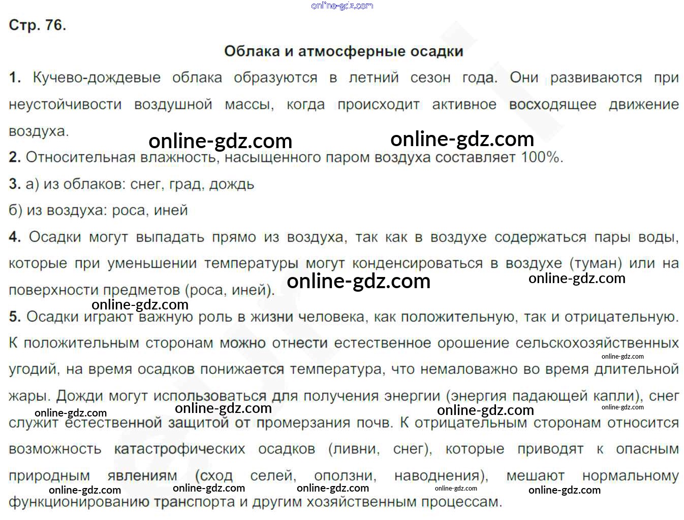 Готовые домашние задания по Географии за 6 класс Рабочая тетрадь Румянцев, Ким Вертикаль 2015 - Страницы тетради 76