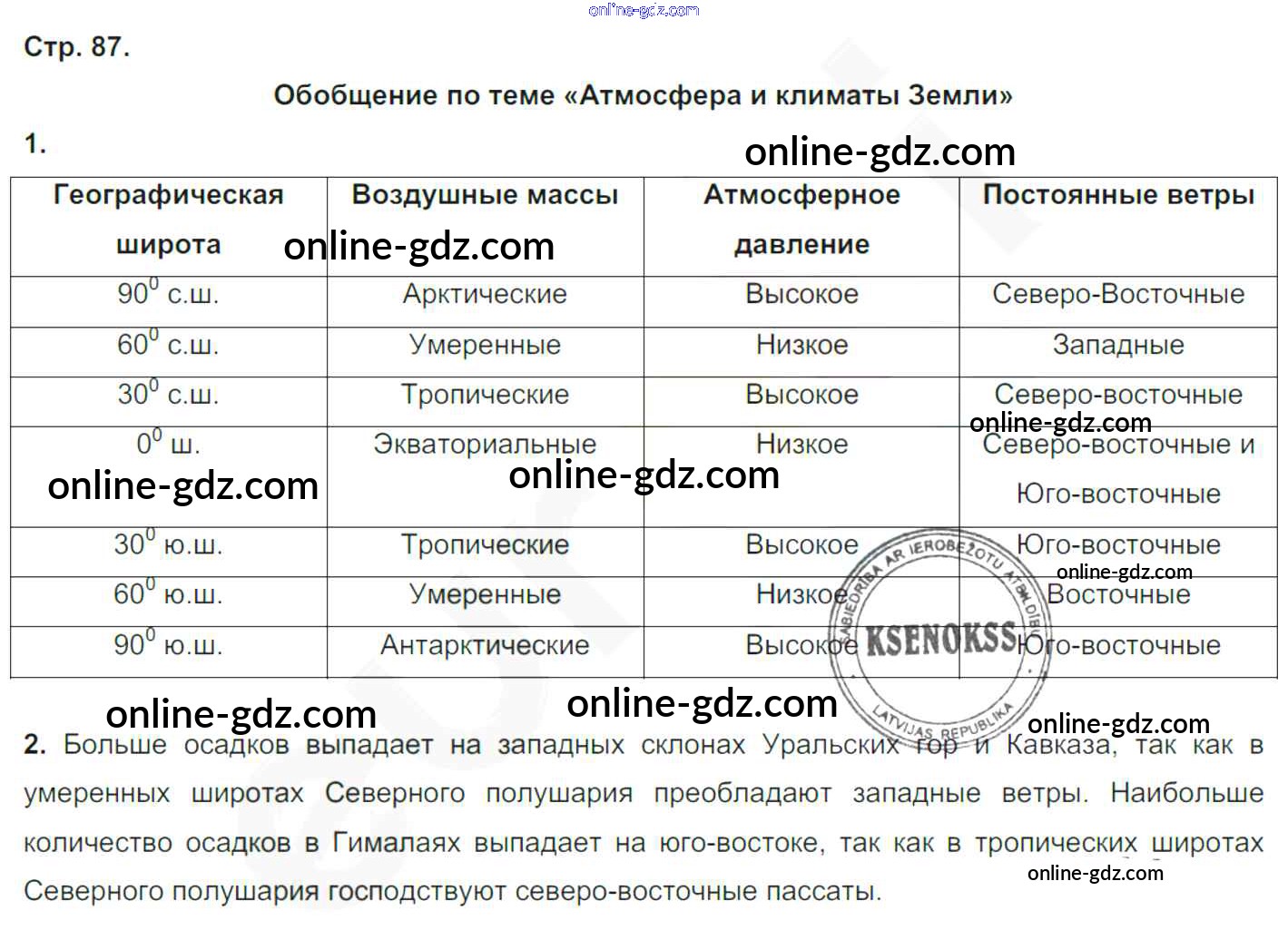 Готовые домашние задания по Географии за 6 класс Рабочая тетрадь Румянцев, Ким Вертикаль 2015 - Страницы тетради 87