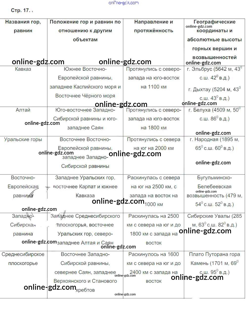 Готовые домашние задания по Географии за 5, 6 класс Рабочая тетрадь Сиротин 2019 - Страницы 17