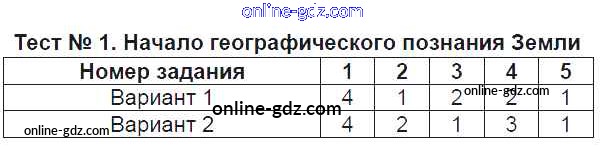 Готовые домашние задания по Географии за 6 класс Тесты Пятунина, Пятунин УМК 2017 - Тесты Тест-1. Начало географического познания Земли