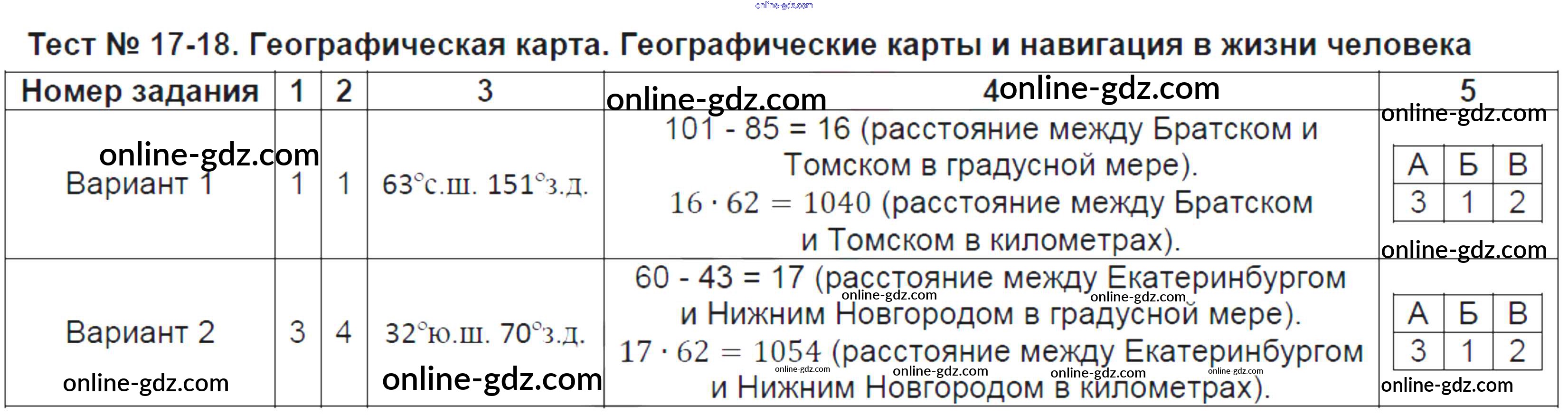 Готовые домашние задания по Географии за 6 класс Тесты Пятунина, Пятунин УМК 2017 - Тесты Тест-17-18. Географическая карта. Географические карты и навигация в жизни человека