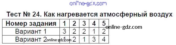 Готовые домашние задания по Географии за 6 класс Тесты Пятунина, Пятунин УМК 2017 - Тесты Тест-24. Как нагревается атмосферный воздух