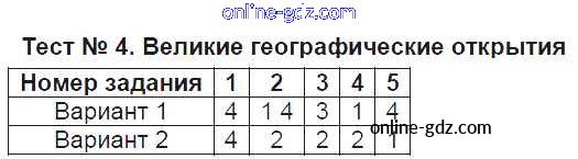 Готовые домашние задания по Географии за 6 класс Тесты Пятунина, Пятунин УМК 2017 - Тесты Тест-4. Великие географические открытиям