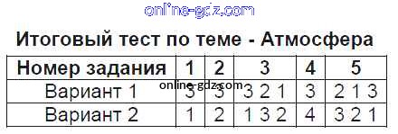 Готовые домашние задания по Географии за 6 класс Тесты Пятунина, Пятунин УМК 2017 - Итоговые тесты Тесты Итоговый тест по теме - Атмосфера