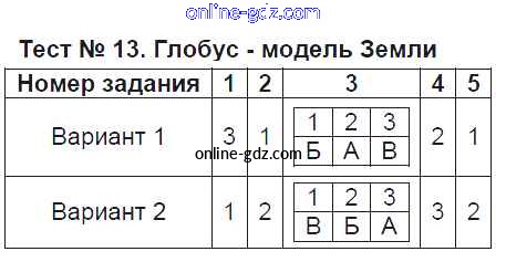 Готовые домашние задания по Географии за 6 класс Тесты Пятунина, Пятунин УМК 2017 - Тесты Тест-13. Глобус - модель Земли