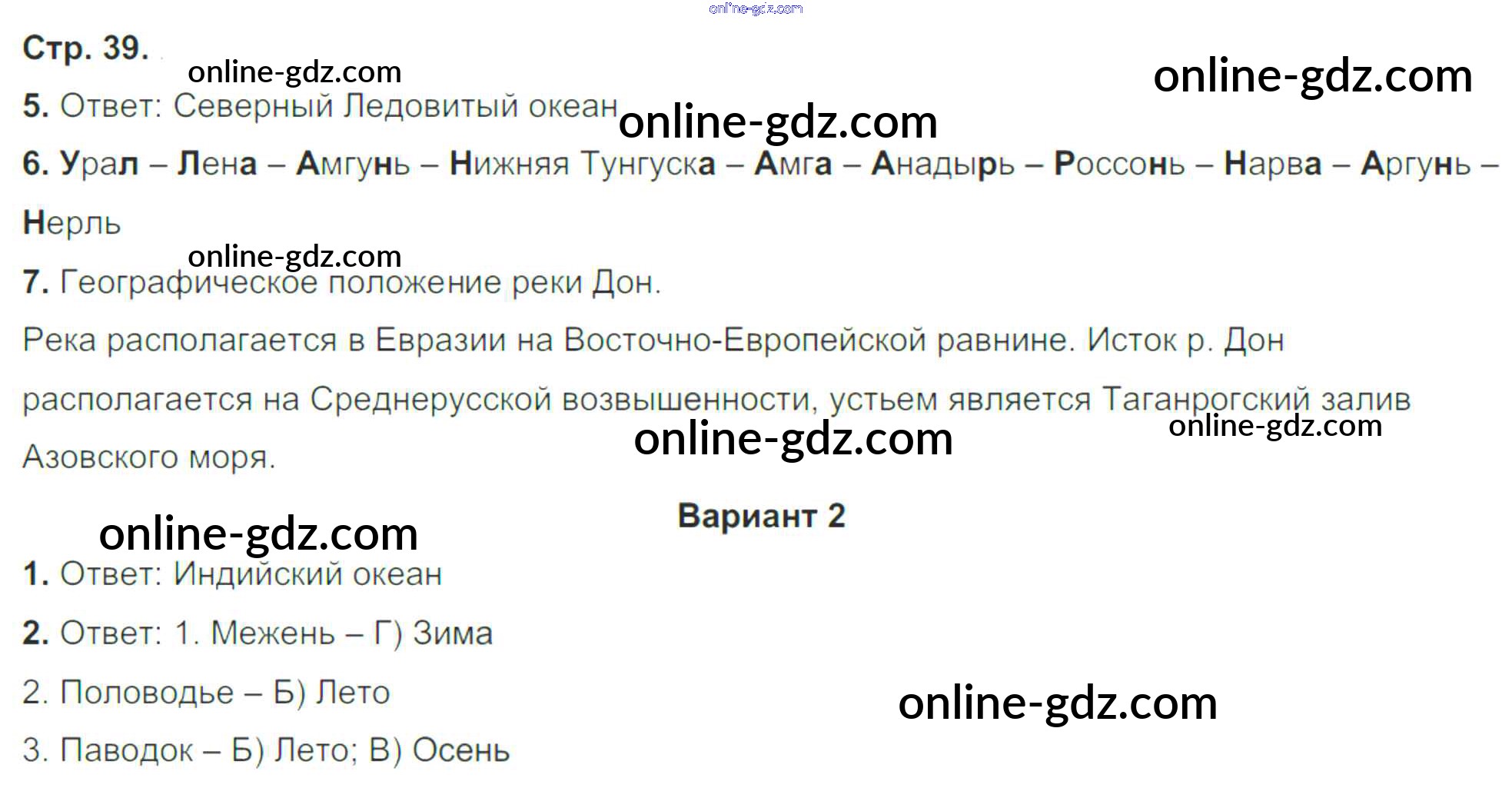 Готовые домашние задания по Географии за 6 класс Проверочные и контрольные работы Летягин Алгоритм успеха 2018 - Страницы 39