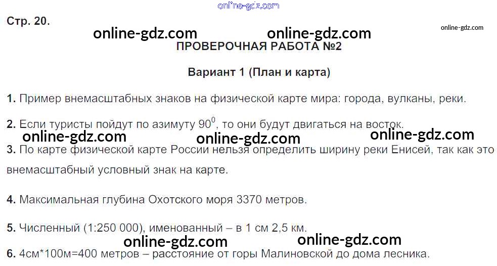 Готовые домашние задания по Географии за 5, 6 класс Тетрадь-экзаменатор Барабанов Сферы 2017 - Страницы 20