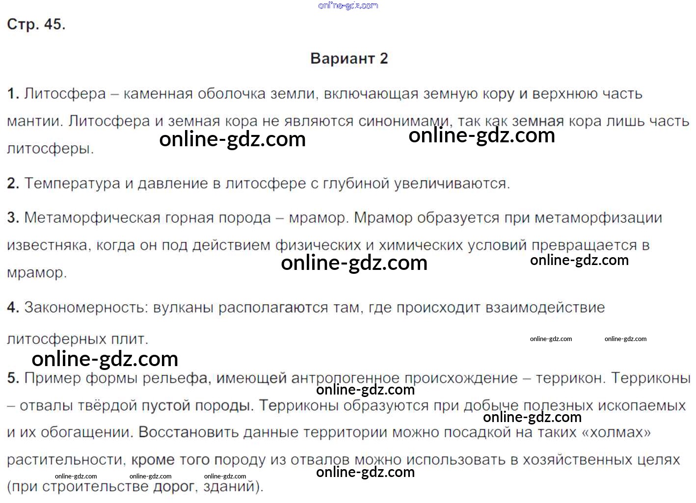 Готовые домашние задания по Географии за 5, 6 класс Тетрадь-экзаменатор Барабанов Сферы 2017 - Страницы 45