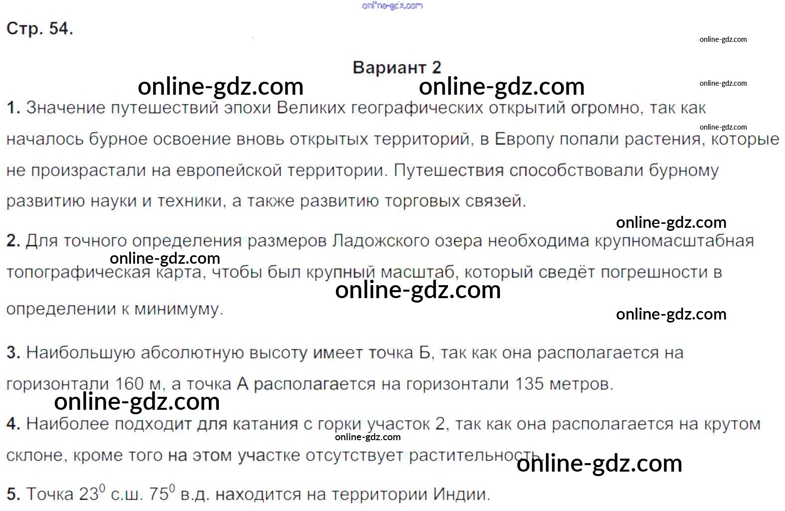 Готовые домашние задания по Географии за 5, 6 класс Тетрадь-экзаменатор Барабанов Сферы 2017 - Страницы 54