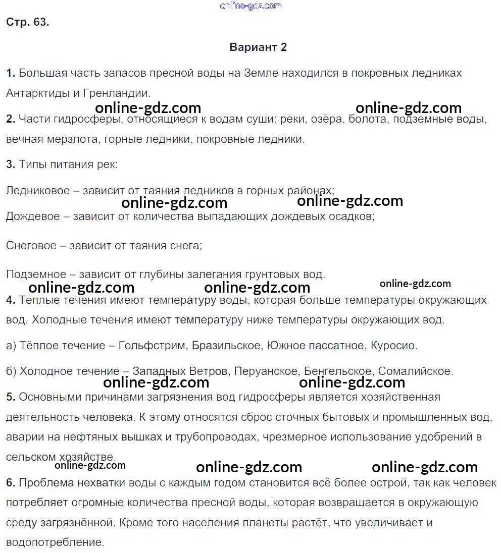 Готовые домашние задания по Географии за 5, 6 класс Тетрадь-экзаменатор Барабанов Сферы 2017 - Страницы 63