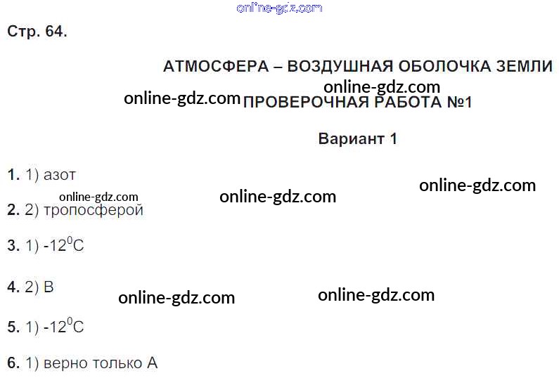 Готовые домашние задания по Географии за 5, 6 класс Тетрадь-экзаменатор Барабанов Сферы 2017 - Страницы 64