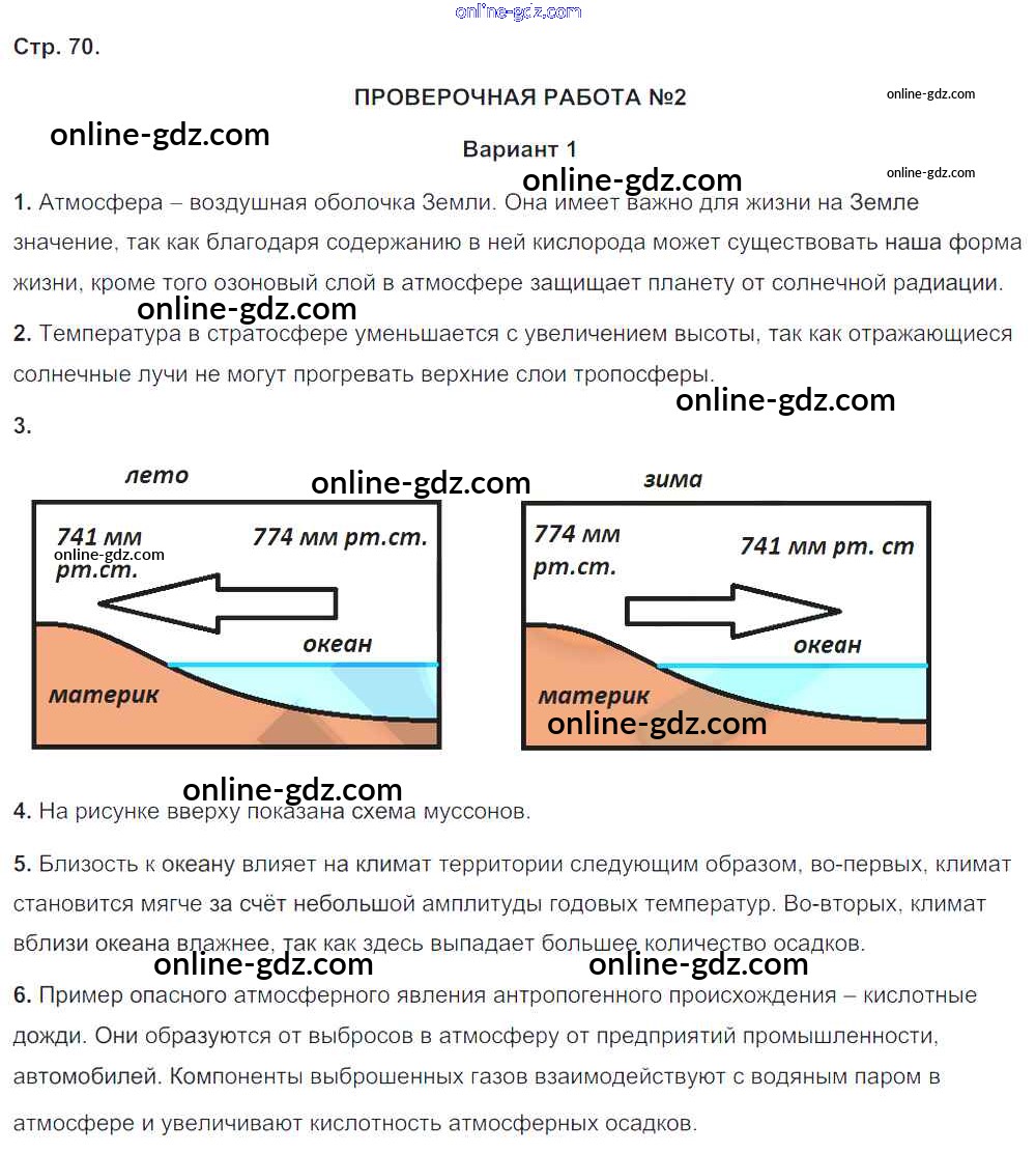 Готовые домашние задания по Географии за 5, 6 класс Тетрадь-экзаменатор Барабанов Сферы 2017 - Страницы 70