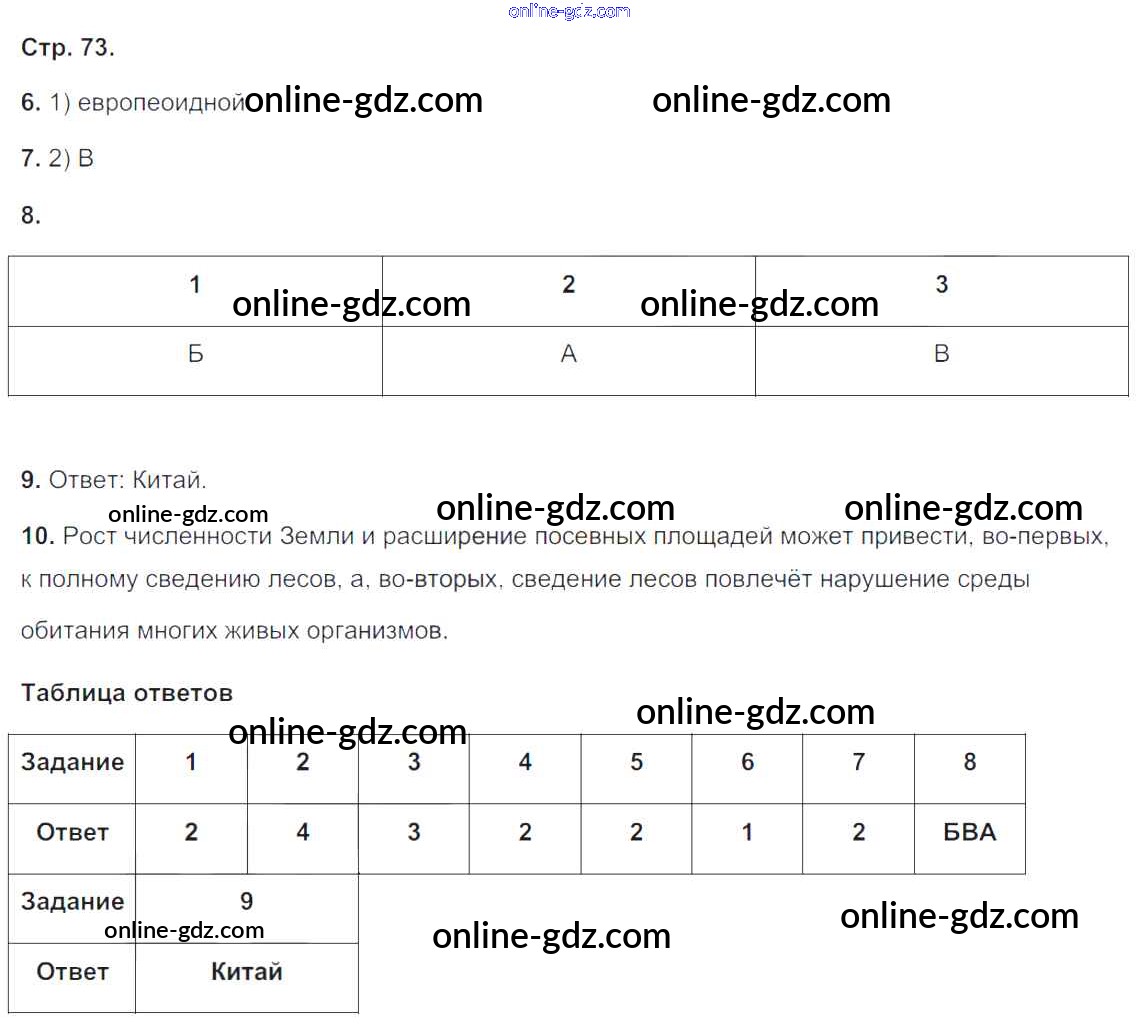 Готовые домашние задания по Географии за 5, 6 класс Тетрадь-экзаменатор Барабанов Сферы 2017 - Страницы 73