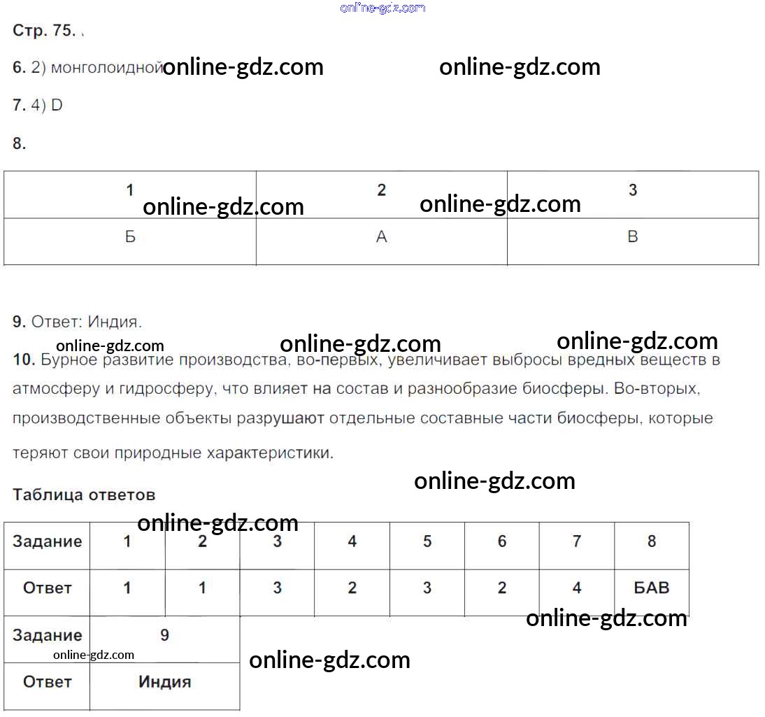 Готовые домашние задания по Географии за 5, 6 класс Тетрадь-экзаменатор Барабанов Сферы 2017 - Страницы 75