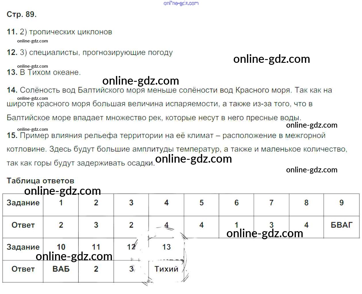 Готовые домашние задания по Географии за 5, 6 класс Тетрадь-экзаменатор Барабанов Сферы 2017 - Страницы 89